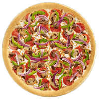 Ham, Pepperoni, Salami, Mushroom, Green Pepper, Red Onion, Olives, Pizza Sauce.